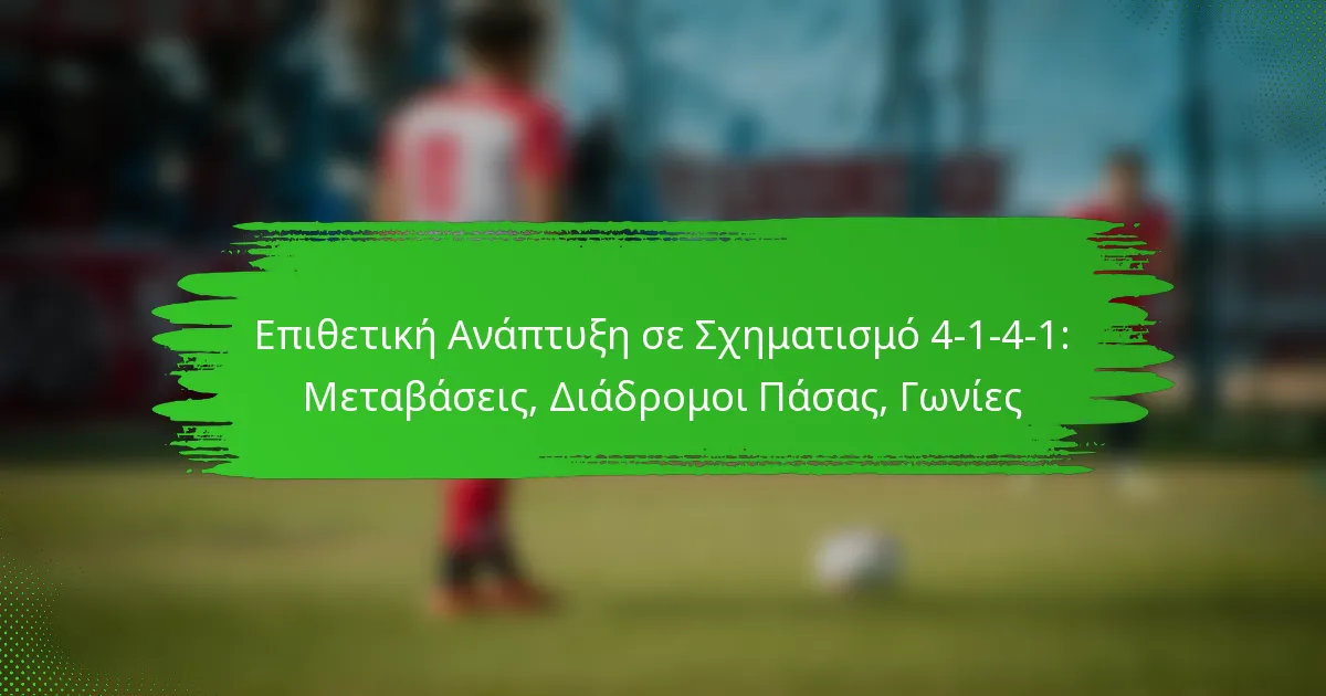 Η διάταξη 4-1-4-1 είναι μια τακτική ρύθμιση στο ποδόσφαιρο που συνδυάζει αμυντική σταθερότητα με δυναμική παρουσία στο κέντρο, επιτρέποντας στις ομάδες να μεταβαίνουν αποτελεσματικά μεταξύ επίθεσης και άμυνας. Για να μεγιστοποιήσουν την επιθετική ανάπτυξη, οι ομάδες πρέπει να εστιάσουν στη στρατηγική τοποθέτηση, τις γρήγορες μεταβάσεις και τη δημιουργία διαδρόμων και γωνιών πάσας που εκμεταλλεύονται τις αδυναμίες της άμυνας. Εκμεταλλευόμενοι αυτά τα στοιχεία, οι παίκτες μπορούν να ενισχύσουν την ικανότητά τους να διατηρούν την κατοχή και να δημιουργούν ευκαιρίες για γκολ.