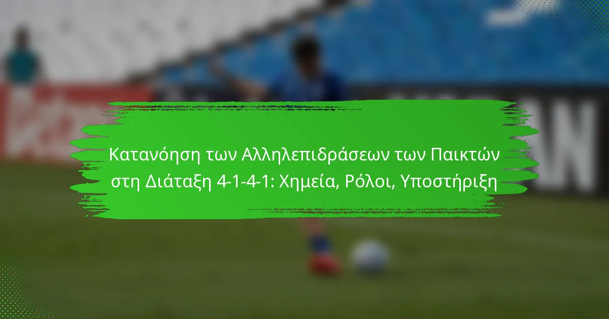 Η διάταξη 4-1-4-1 περιλαμβάνει διακριτούς ρόλους παικτών που ενισχύουν τη χημεία της ομάδας και την τακτική αποτελεσματικότητα. Κάθε θέση έχει συγκεκριμένες ευθύνες που συμβάλλουν τόσο στη σταθερότητα της άμυνας όσο και στην επιθετική ροή, καθιστώντας απαραίτητο για τους παίκτες να κατανοούν τις λειτουργίες τους μέσα σε αυτή τη ρύθμιση.